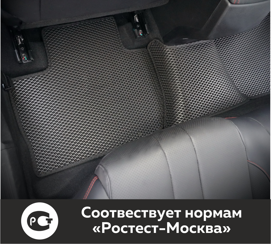 Коврики изготавливаются из современного полимерного материала EVA (Ethylene Vinyl Acetate). В России этот материал также носит название СЭВИЛЕН. Этот инновационный по своим свойствам полимер представляет собой "вспененную резину". Кроме автомобильных ковриков, из EVA производят: подошвы для обуви, спортивные маты, мягкий пол для детей, походные пенки, сидушки и многое другое. Материал EVA обладает важными характеристиками: долговечность, износоустойчивость, водонепроницаемость, экологичность, отсутствие запаха, стойкость к химическим реагентам. В 2014 и 2017 годах нами были получены сертификаты качества "РосТест" на автоковрики из материала EVA.