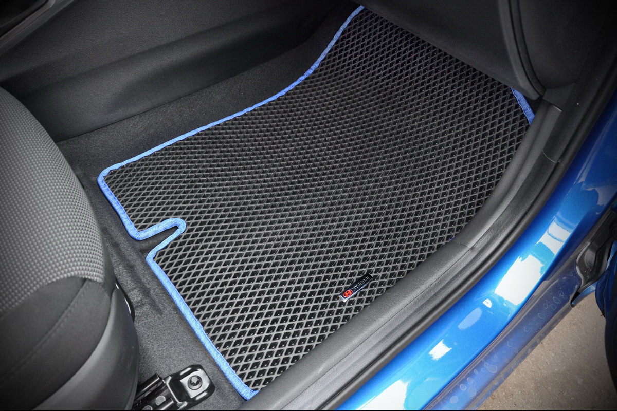 Толщина ковриков EVA составляет 10-12 мм. Глубина ячеек 7-8 мм. Такая толщина ковриков позволяет им служить довольно долго, не протираясь до 3 лет. А благодаря такой глубине ячеек коврик EVA площадью 1 кв.м. способен захватить около 3,5 л жидкости, сохраняя в чистоте вашу обувь и обивку салона.