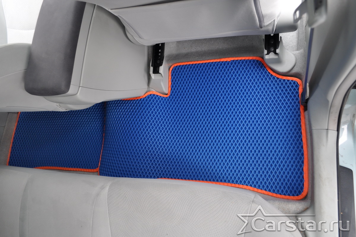 Толщина ковриков EVA составляет 10-12 мм. Глубина ячеек 7-8 мм. Такая толщина ковриков позволяет им служить довольно долго, не протираясь до 3 лет. А благодаря такой глубине ячеек коврик EVA площадью 1 кв.м. способен захватить около 3,5 л жидкости, сохраняя в чистоте вашу обувь и обивку салона.