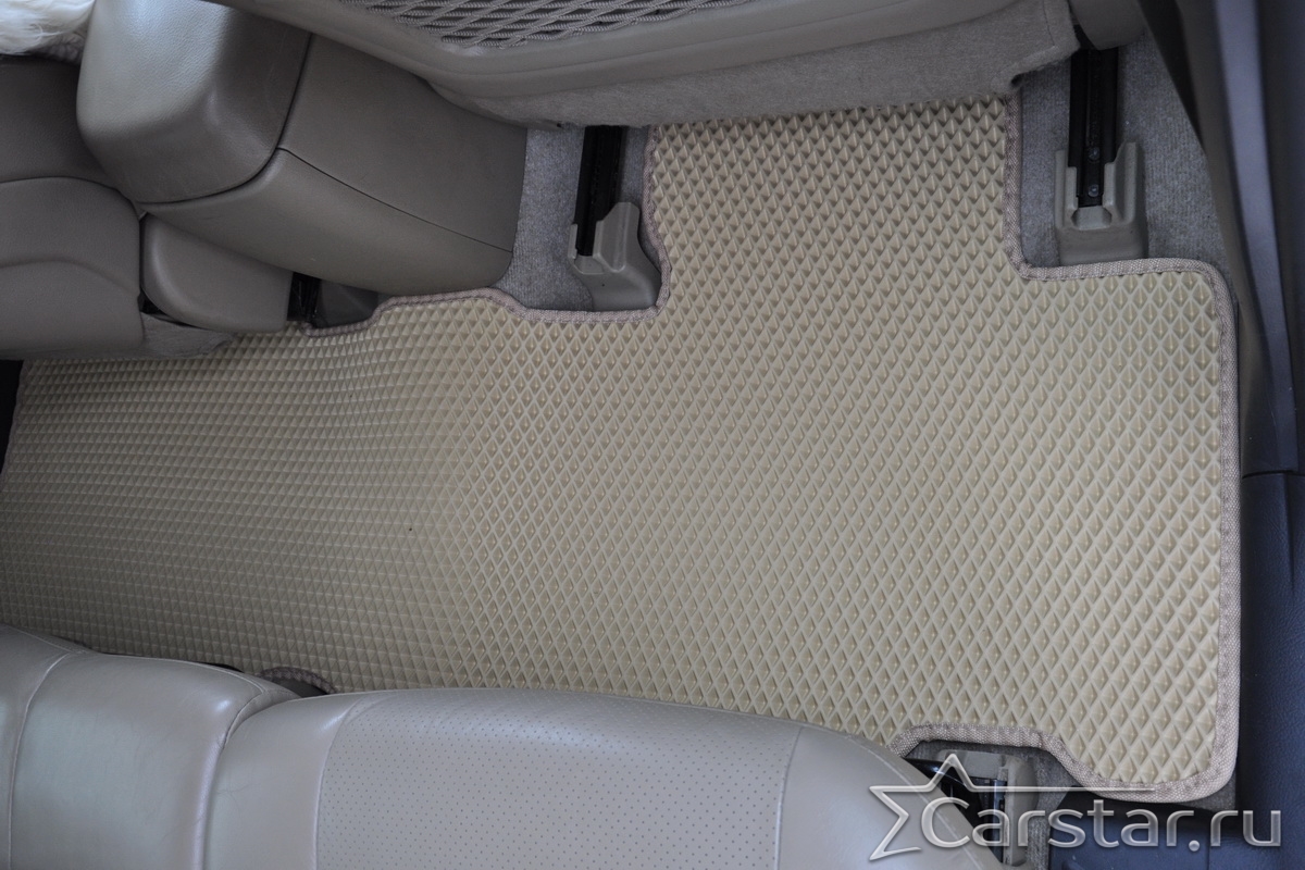 Толщина ковриков EVA составляет 10-12 мм. Глубина ячеек 7-8 мм. Такая толщина ковриков позволяет им служить довольно долго, не протираясь до 3 лет. А благодаря такой глубине ячеек коврик EVA площадью 1 кв.м. способен захватить около 3,5 л жидкости, сохраняя в чистоте вашу обувь и обивку салона.