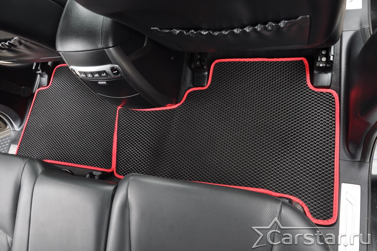 Текстильные коврики надёжно крепятся с помощью оригинальных систем фиксации. Обратная сторона имеет противоскользящее покрытие, что обеспечивает защиту от смещений и безопасность. Максимальное удобство достигается точными лекалами.