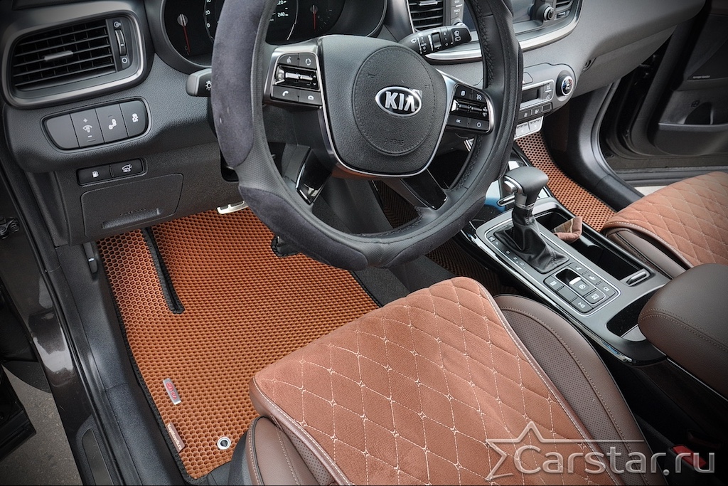 Текстильные автомобильные коврики Kia Sorento III Prime 3 ряда (2014-2020) – это классический аксессуар, который обеспечит салону автомобиля неизменную чистоту, порядок и уют. Компания Carstar предлагает изделия из качественного ковролина в сочетании с полипропиленовым основанием на шипах, такая комбинация делает их прочными и водонепроницаемыми.