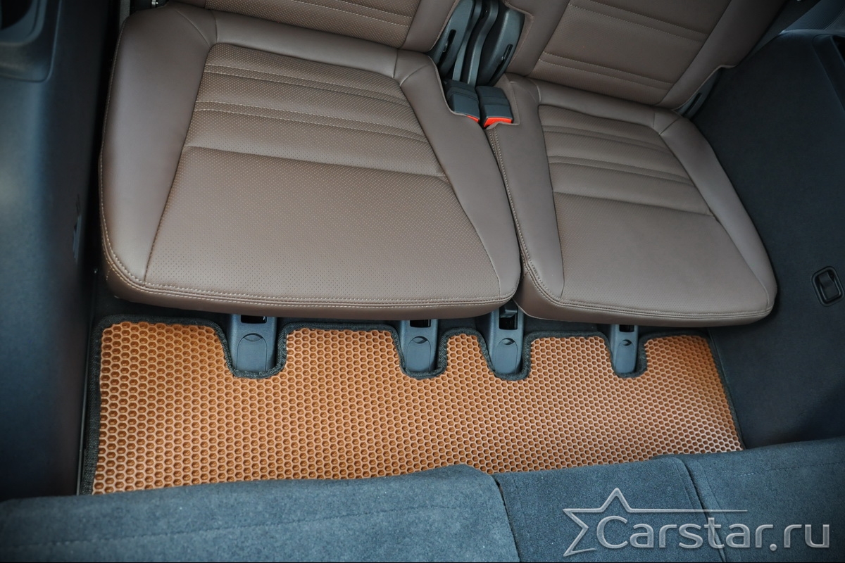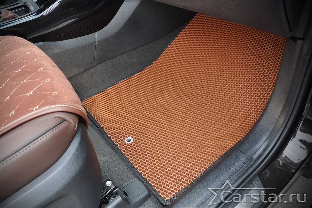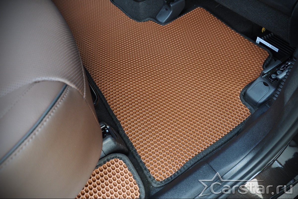 Текстильные коврики надёжно крепятся с помощью оригинальных систем фиксации. Обратная сторона имеет противоскользящее покрытие, что обеспечивает защиту от смещений и безопасность. Максимальное удобство достигается точными лекалами.