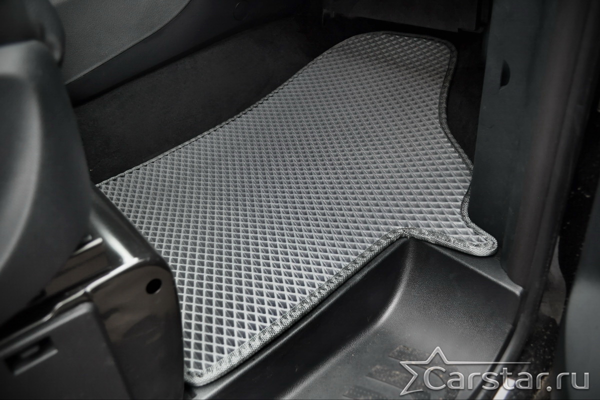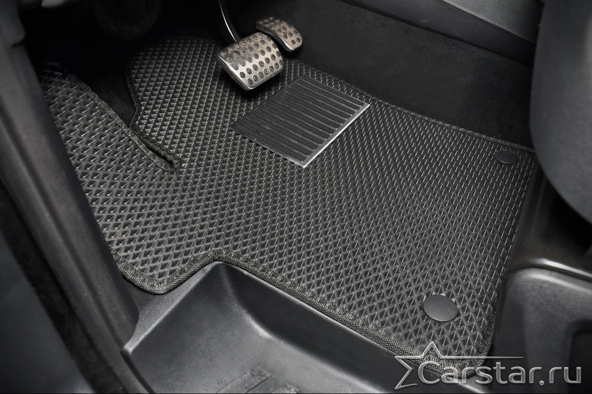 Текстильные коврики надёжно крепятся с помощью оригинальных систем фиксации. Обратная сторона имеет противоскользящее покрытие, что обеспечивает защиту от смещений и безопасность. Максимальное удобство достигается точными лекалами.