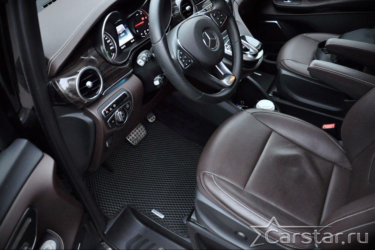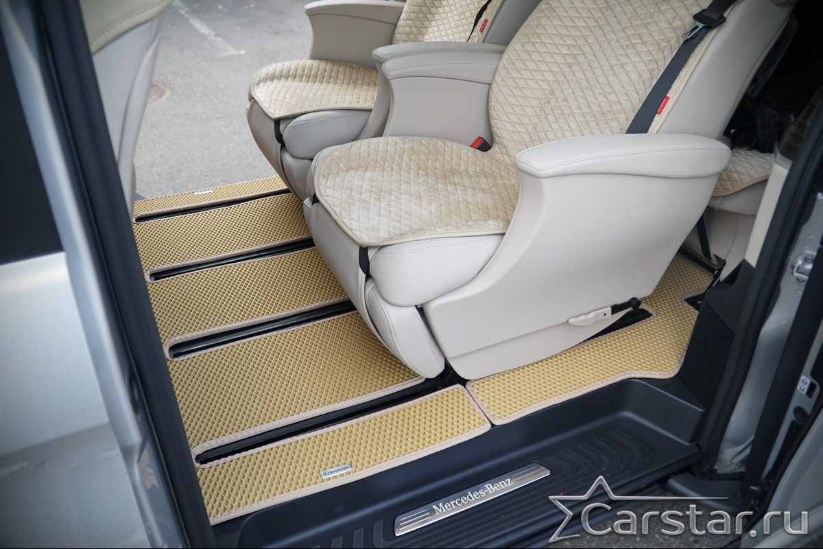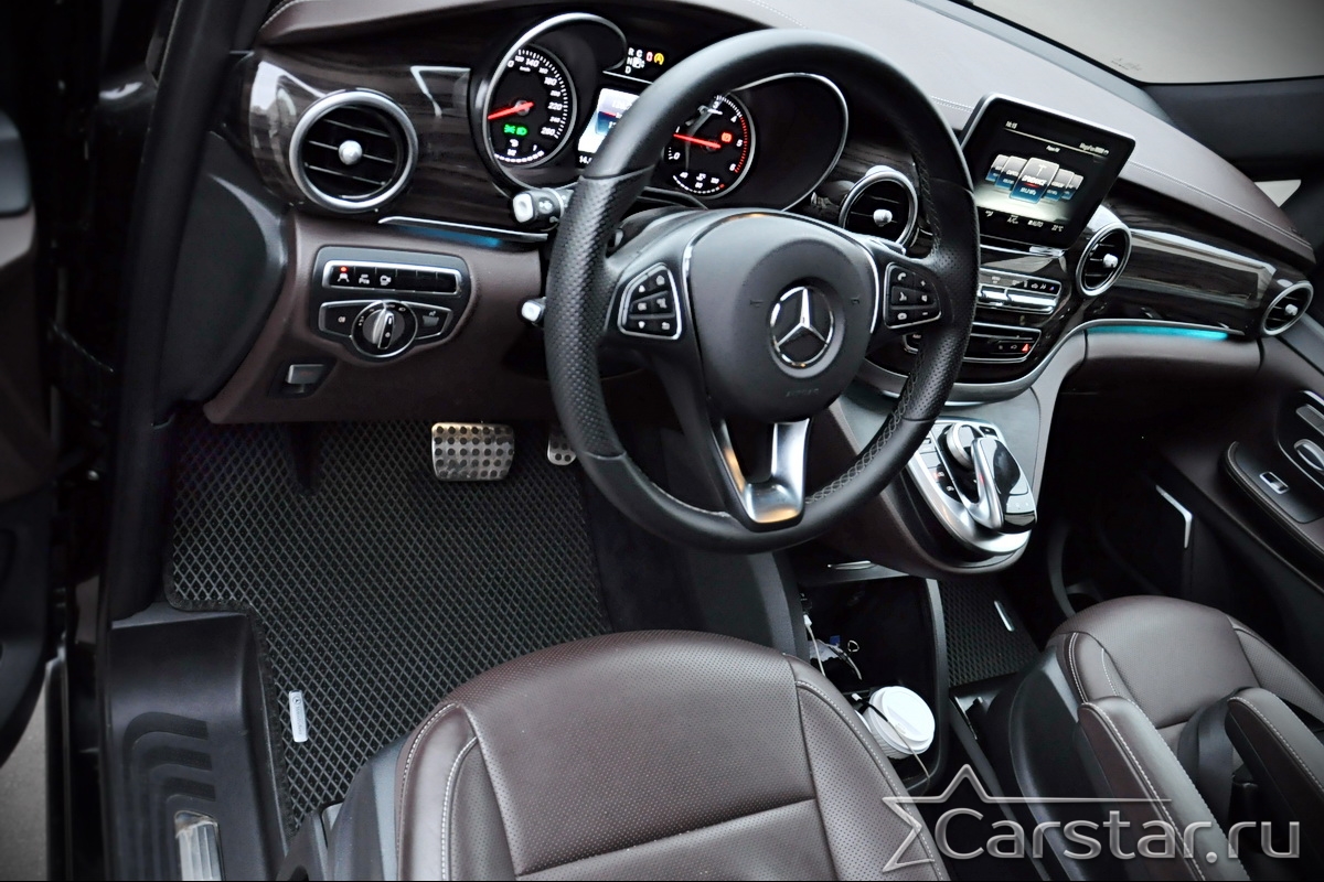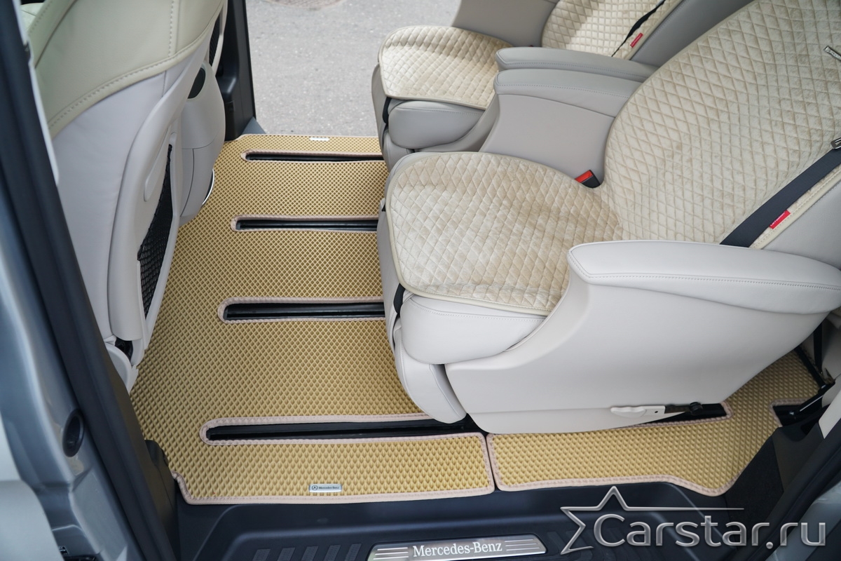 Текстильные автомобильные коврики Mercedez-Benz V-klasse II W447 (лимузин) (2014->) – это классический аксессуар, который обеспечит салону автомобиля неизменную чистоту, порядок и уют. Компания Carstar предлагает изделия из качественного ковролина в сочетании с полипропиленовым основанием на шипах, такая комбинация делает их прочными и водонепроницаемыми.